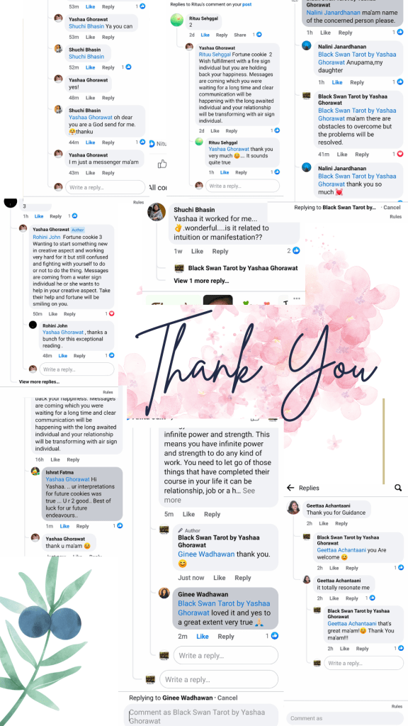 I have done this Reading also on my page. ‘Go and have a look on my facebook page.‘ If you like it, then share and follow my facebook page. “My facebook page name is Black Swan Tarot by Yashaa Ghorawat.” “Please do like and follow my page and my website.”😊
